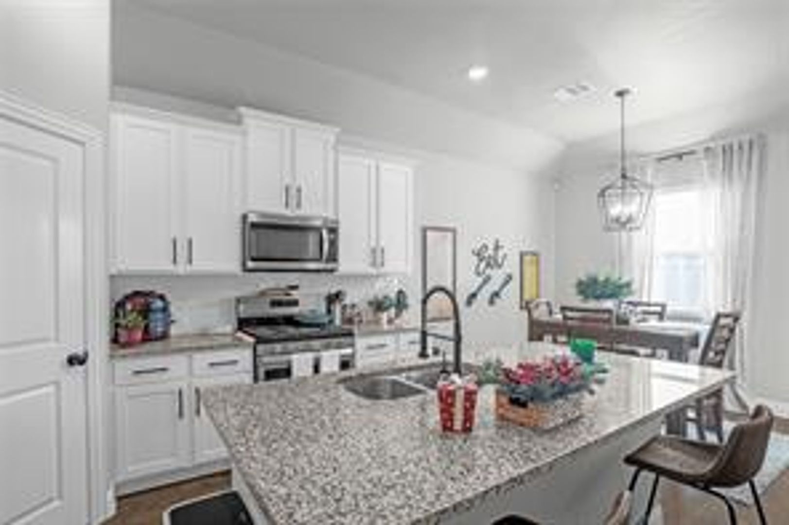 Bright, clean home in spectacular neighborhood! Great floor plan with split bedrooms. Modern kitchen has white cabinets, granite counter tops, and stainless appliances. Covered patio open to ample back yard with plenty of space for social gatherings or kids to play. Conveniently located close to neighborhood elementary school. Community has multiple amenities for leisure and play including community center, pools, and multiple playgrounds. REFRIGERATOR, WASHER AND DRYER ARE INCLUDED.