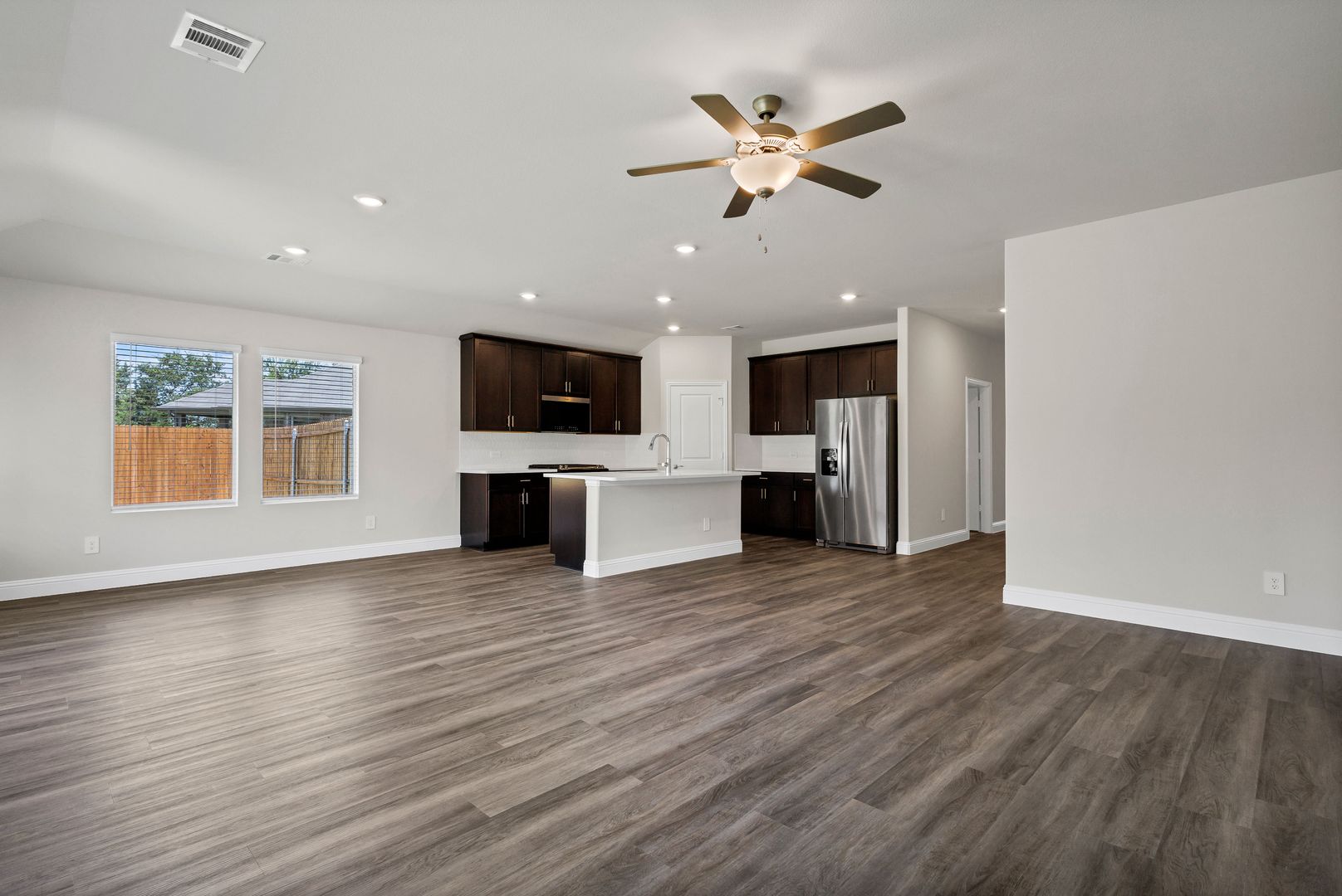 Single Story Floor plan features 4 bedroms, 3 full baths, with a two car garage. Open large living and dining area, plenty of space! New finishes and fixtures throughout on corner lot. Perfect for all types of families. Home comes complete with all appliances, washer, dryer, fridge, and a gas range, with upgraded faucets and upgraded microwave. Ready to go this June 1. Great price in a great area. Community pool, parks jogging and bike paths Large open green spaces throughout the community for exercise, play or relaxation. Request a tour today!